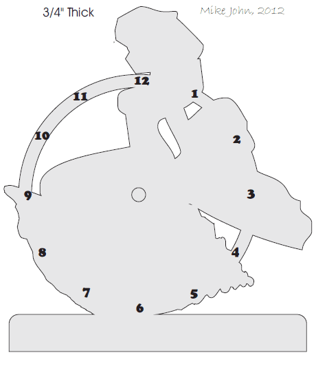 The numbers on the clock pattern above are to give you an idea of where to place your numbers. The hole in the centre depends on your mechanisms instructions but mine is going to be a 3/8" hole. The numbers on a clock are at every 30 degrees.