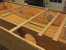 As I was planning my beams I realized I could set the beams into notches in the walls of the side airtanks instead of being just screwed in. I could also run one beam from one side to the other right where the leeboards are for extra reinforcement. Again, this would add weight but make for a very solid boat that could take the punishment dished out during the EC. All the beams went in and I added stringers on the inside of the airtanks to give me a solid surface to glue and screw the deck into.