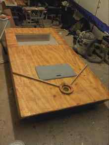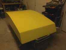 Bottom painted in bright yellow for visibility. I did have to clean the shop of all the dust the build had created before this shot.
