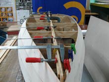 We bought two sheets of 2400*1200*4mm plywood and one sheet of 2400*1200*7.5mm-plywood. At first, we made the body just as the plan said. It was very hard to back the backbone straight and attaching the planks without making big space between them was also not easy.