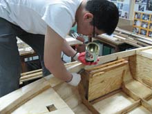 I contacted the designer of Stella, Christer Bystrom, and thanks to his kindness, he sent me the plans for Stella. We chose the smallest one, Stella 73. We loved her easy-to-make side plank, tiny body, and computerized plan, but we wanted to make an offset centerboard in order to move our legs freely when in the water. Since I couldn’t make contact with Phil Bolger and Friends Inc. at that time - it was about August - we had to use only Queen Mab’s picture in Duckworks Magazine website.
