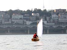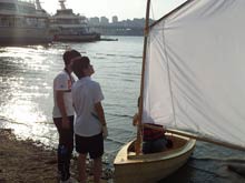 All parts being done, we brought HD24 to the Han River and had an experimental sail. She sailed quite well but we found one small hole which allowed water to come in. We reinforced that part and she was finally done.