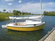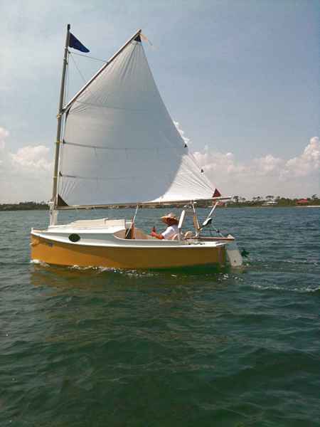 This is the twin keeled Fat Cat that got the name 'Kat Kan Dew!' from the experience of the FL120 (picture by Pat Johnson of Pensacola). My thanks to everyone that helped me with the project. I can't imagine using anything but shallow keels on any boats I build in the future. Which will probably be a Ptarmigan 17.
