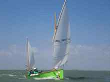 Gamaray had both reefs in by this time and they stayed in for the remainder of the trip. Even with both reefs in, our speed averaged 5 to 6 knots. There were times when the wind would kick up even higher and at those times we would hit 7 knots for a few minutes. The highest speeds we saw were on the 5th and 6th days when we averaged 6 or 7 knots, and hit 8 a few times. I think the boat was starting to lighten up a bit as water and food supplies were consumed. In a boat with a 12 foot waterline these speeds are plenty fast as far as I am concerned (course my main cruising boat is a Potter 19 so it’s not like I am used to going fast to begin with). Another thing-if you are singlehanding on this trip you really have to pace yourself. We were on the water 8 to 10 hours a day and taking a break meant pulling over and anchoring (in mostly rough water) or beaching the boat. In these winds, trying to squeeze out every bit of performance is hard on the boat and on the sailor, too, and sailing the boat on the edge all day takes a somewhat difficult, fun adventure and turns it into an ordeal for the singlehander. You want to take it easy if you are singlehanding, in my opinion anyway.