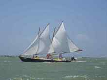 They eventually got the sails down, started the engine and were able to back into the channel, then took off to the west as I raised sail and headed east towards Port Aransas. In 2010 we had spent a couple of hours tacking up the Corpus Christi Channel after the wind went more to the east than is normal. This year it blew out of the southeast like it is supposed to, and the trip past the ferries at Port Aransas was fast and all on one tack! The rest of the sail was easy and quick-we pulled up at Camp 4 about 3pm. It was a nice sand/shell beach not far from the entrance to Corpus Christi Bayou.