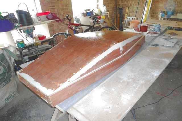 This being my first boat or "will it float" project I took the decision to use what I had in the garage and some advice from an old joiner (my Dad) who when asked about boats said one thing "cascamite it". The use of chine logs, fibreglass and purchasing expensive equipment was now out of the question, as my wife has the purse strings and wasn't tickled pink by the idea.