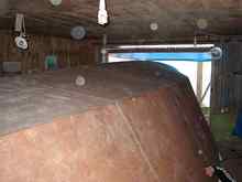 I then cleaned off all the scarf joins and faired them through in preparation for fibreglassing. We began fibre glassing at 9 in the morning with two of us and 18 hours later we had completed the task. I left the boat for two days to cure off, and then applied a micro balloon epoxy filler mix for fairing.