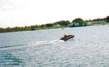 My son Ryan was home on leave from the Navy when this photo was taken as he piloted Lame Duck around Lake Vista, the small lake behind our home in Fishers, IN. |