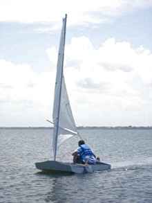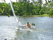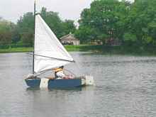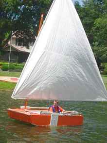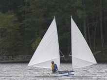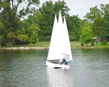 Wild Duck could also be sailed with just a single sail if the wind was too brisk. Counting the two ducks I helped John and Andy complete, Wild Duck was the fourth PDRacer to come out of my garage in Fishers, IN on Lake Vista. Later, Wild Duck would be the only boat of my five-boat fleet to go with me when we moved to Florida. I learned a great deal from Wild Duck about how the Center of Effort of sails shifts with different sail and leeboard positions when sailing with twin sails.
