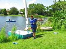 At the 2009 Worlds at Allatoona Lake, Ryan placed 4th overall. He might have placed much better if I had not delayed his start in the third race by having him assist me with some repairs on Wild Duck. Still, he performed well for a rookie.