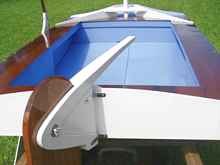 This shot shows the cover fully rolled out and attached. If I sat on the bottom and not on the seat, I could sit up under the canopy. I never got around to finishing the side panels before I sold this boat.