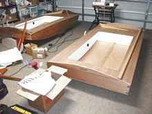 Two nearly completed PDRacer Z-Duck Kits await loading for the trip to Mystic, CT for the Wooden Boat Show.