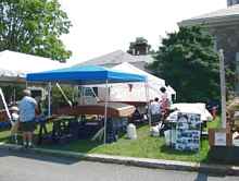 Our work site at the Wooden Boat Show.  Carol Roffly and her friend Arlene built the boat in the foreground while Dean and Susan Herring completed the duck in the background. My friend Nate Carey offered invaluable assistance to the boatbuilders.