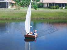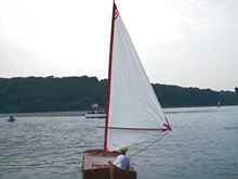 Carol takes her finished PDRacer for a sail on the Mystic River. The PDRacers were the only craft among the family boatbuilders to be finished in time to sail on Sunday. I don’t think Carol ever registered her completed PDRacer.
