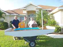 My next PDRacer project, PDRacer #12 and scow # 18 for me, was a joint project with the Roger Jewell family. Roger is a missionary with a home in the DR (Dominican Republic) and hoped that he and his sons could learn a little about sailing and boat building before they returned home. His plan was to complete one boat with his sons under my mentorship, then return to the DR and build three more PDRacers—one for each of his sons. Last fall I had volunteered to assist them with this worthy project, and this spring, they took me up on my offer. In about a week’s time, we completed DR Duck, just it time for Roger and the boys to load themselves and their boat on an old DC-6 that flies relief missions to the Caribbean out of nearby Ft. Pierce, FL.