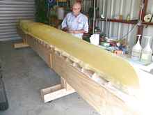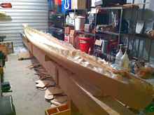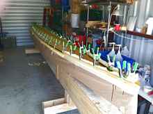 At this point, I wanted the epoxy to set completely before removing the boat from the forms.