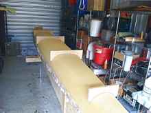 For the inside of the hull, I laid my fabric across and overlapped to get a better yield of the material and rough trimmed it.