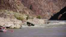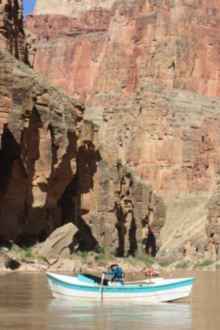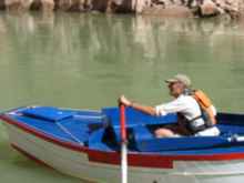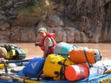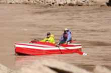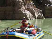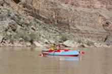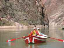 Tom Martin rows the replica Gem he built in 2009--the tallest guy on the trip in the littlest boat. He has done four Canyon runs in the Gem-so far.