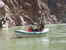 Craig Wolfson rows his wife Pam in the Susie R. Note the drysuit, which Pam elected to stop wearing shortly before running Killer Fang Falls with Norm. Not her best decision. (Tom Martin photo)