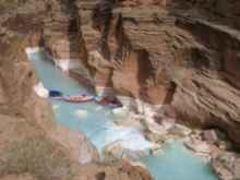 The replica Gem, Flavell, and Susie R in the amazing turquoise waters of Havasu Creek.