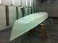We are at the very early stages of testing, but she planes cleanly with two heavy men aboard while being pushed by a brand-new (and therefore, tight) Suzuki 6hp four-stroke. She also seems to plane cleanly with three large men aboard, but until we get speed figures we won't know whether she is in the planing or the semi-planing mode.