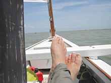 Tacking up the Port Mansfield Channel to Camp 1 at the jetties. I had no problems keeping cool in spite of the 100 degree temps.