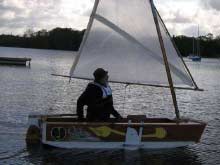 Thought you might be interested in our boatbuilding competition held last weekend in Pender Harbour. The basics are: teams of four, given a collection of materials on the day of the event, one hour to plan, and then 3 hours to build some sort of craft to race round a set of buoys in the harbour. The materials change each year, have ranged from plywood and 1X2's to a cardboard sonotube, wood and plastic. As part of the celebration, teams from the high school build a quick canoe in the weeks before the event, and have their own race just before the adult event. There are also activities for younger kids, face painting, build your own toy boat, or pirate flags. Information and a collection of previous years photos.