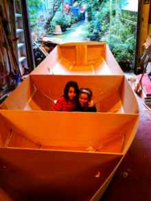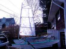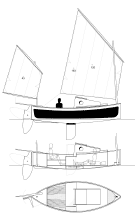 I'm working on a Phil Bolger cartopper. It is scaled up by 25% (length 14'9", width 5'2"). The hull is mostly done. Just need to do a bunch more fiberglassing and put together the centerboard case, foils, and spars. I hope to have it done by summertime.