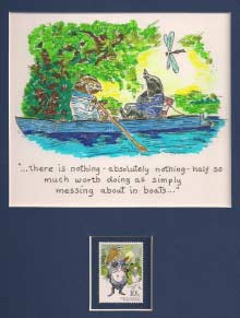 We just got a hold of a bunch of 'Wind in the Willow' stamps issued by Great Britain in 1979. Susan did the artwork and calligraphy; the matting is done by me.