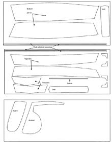 Since the panels are cut to be stitched together, frames, ladder supports and strongbacks are not used. Usually a table or some other flat platform does just as well. The plans are simple, even though most designers of SAG include plenty of instructions. After you've done one SAG boat, you will have learned most of what you'll ever need to know. After you've done two SAG boats, you'll probably know 90% of what any set of instructions say.