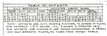 This is the Table of Offsets. These are numbers we created when we measured with the up-and-over method. Tables of offsets came about so that builders could have an accurate record of the proportions of a ship in a handy tablet form rather than keeping huge full sized parts.