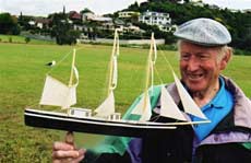 Roy with lightweight freesail model Gundaroo he gave to the writer