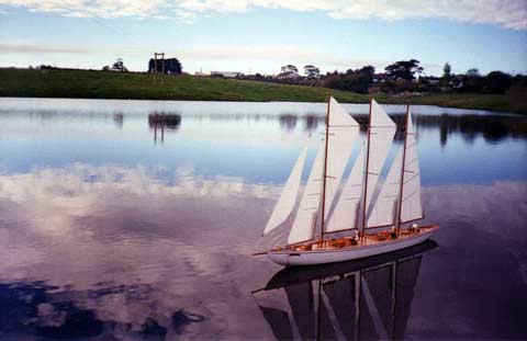 Roy was an was an absolutely brilliant modelmaker, a well-trained and talented craftsman in wood who after years producing RC sail and power boat models turned his hand to producing accurate and the most detailed of exhibition standard model automobiles and old biplanes that spun their propellers from his garage roof and deck year after year exposed to the vagaries of weather. Many of his models he would bring up for me to photograph for him and for years we lived less than a hundred metres from each other in Trinidad Road where he had largely built his own house and where he spent so much time his garage workshop fashioning his models. My Starlet Bells and Whistles, also my classic ketch Marigold were built there by him, the hull of the latter a fiberglass one I provided.
