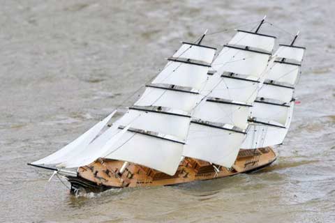 David Edwards is one of those friends of mine never met, who lives in England and sails his painstakingly build square-rigged RC ship models at Setley in the New Forest area with the other members of the Solent Radio Control Model Boat Club. (www.srcmbc.org.uk/)