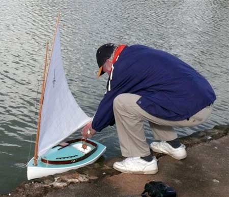 In happy sailing mood at the Sinton road private lake some years ago. How well I remember that shirt he often wore!