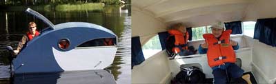Here are two video clips: after I made these videos, I cut an extra hatch in front - it needs to be open when using the outboard motor.