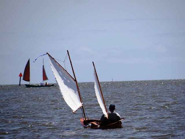 The last is a spectacular picture that Lenna Andrews took with a long lens from way back on shore. I love the contrast of the bright boats and the grey water and sky.