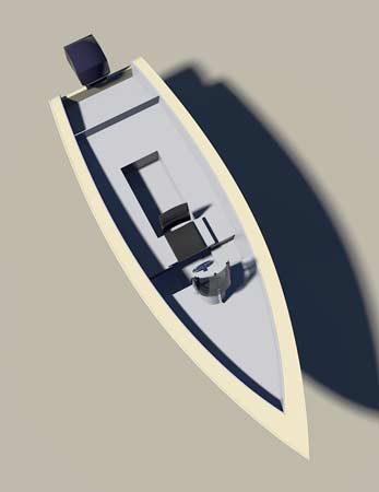After exchanging a few emails with Chuck Leinweber on the subject it emerged that Chuck was interested in building a fairly fast runabout suitable for choppy bays, to be powered by his 25hp 4 stroke outboard. A few more emails crossed between us and the preliminary 'V Boat' design became 'Delfini'.
