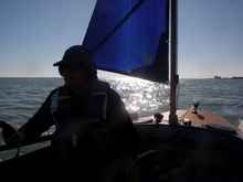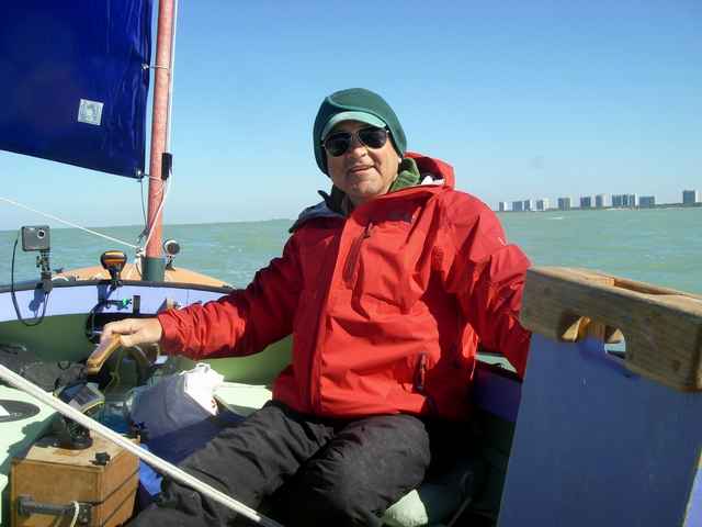 We avoided breaking waves on the way out, but swooped over a couple that were about to tumble. Once clear of the breakers we headed south with a steadily increasing wind. After an hour or so, it rose more and we put a reef back in the main. At some point we scooted by Wiggins Pass but I didn't see it. Subsequent reports showed there were a large number of fellow Watertribers - all kayakers I think - there the previous night. Wiggins is as far south as one can go on the inside route. After that, it's outside into the open Gulf until at least Gordon Pass or more likely Big Marcos. A video posted by Ben Algera (Macatawa) showed that Wiggins seems a lot like New Pass, with rolling waves humping up and occasionally breaking.