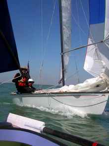 Hare 4: Tom Dyll and Per Lorentzen pass us off Marco Island on their Lightning sailboat while flying a spinnaker.