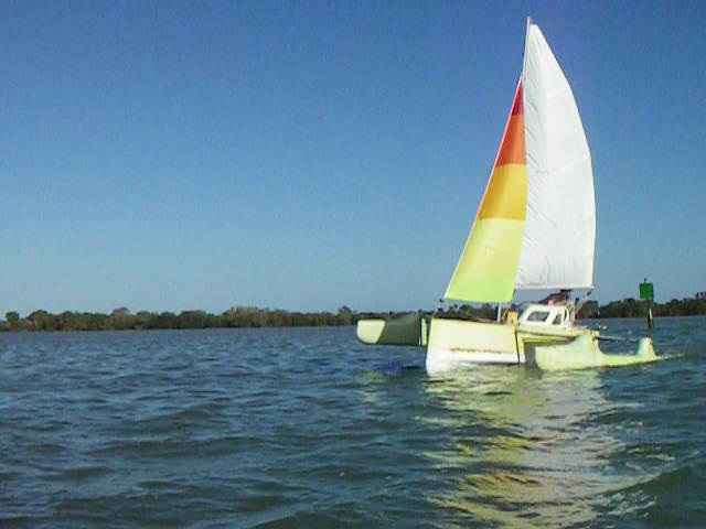I should note here that the Sea Pearl Tri did not catch us that evening, as they should have, and we later learned why: they had broken one of the aluminum castings in the folding mechanism of their port side aka and technically, that was the handicap equivalent of a broken leg.