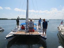 The owners were pleased to show off their boats and “talk shop” with everyone. We expect a few new boats to be in build by this time next year! There were three Tangaroas (36’), a Tiki 30, a Tiki 26 (8M), a Pahi 31, and a Narai 42 that was nearby. The Pahi sailed in more than 500 miles to attend. A Tiki 21 almost made it from more than 200 miles away but was becalmed for an extended period in the maze of islands that make up the Florida Everglades and got within about 35 miles of the event, but the sailors made it by bus!