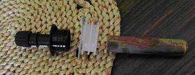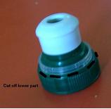 For small amas, I would recommend the installation of a small plastic valve that can be manually opened while the ama is ashore or needing to adjust to a new temperature, but can be securely closed when at risk of being immersed. Such valves are available from common sources and here are two. For a small ama, one can cut off the threaded part of a small water bottle top and bond this over a hole in a deck or bulkhead. For a larger ama-say 10' or more-one can bond on the spiral valve from a 5-litre box of wine. The useful inner part (black) can be punched out of the ribbed (white) part with a large dowel (see pic below) and then the threaded part cut off so that the flange is accessible for bonding to a bulkhead. (Bond it inside to reduce the projection.) I would use the same solution for venting closed end-tanks on even a kayak. These spiral valves from wine boxes are both tough and very watertight.