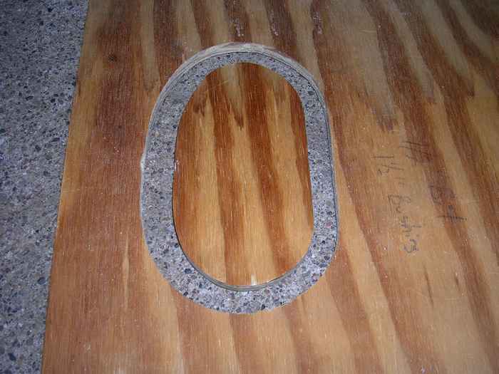 Female pattern mounted to plywood and knothole cut out.