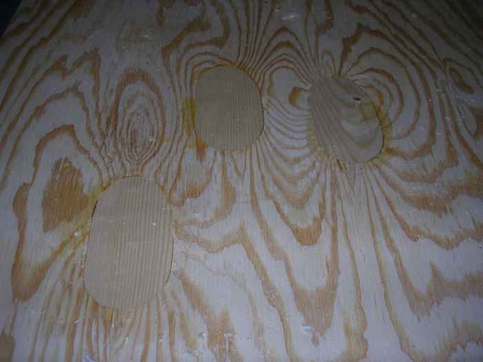 Ugly knot holes in plywood face.