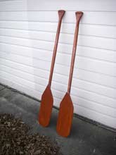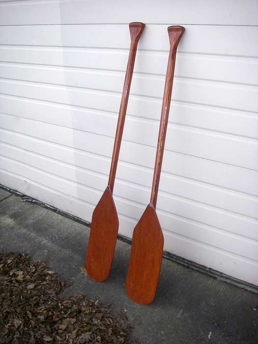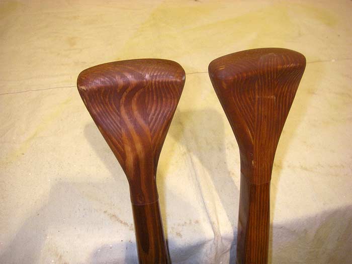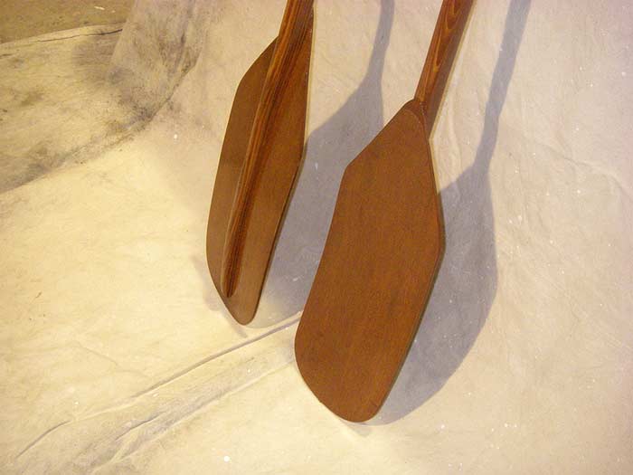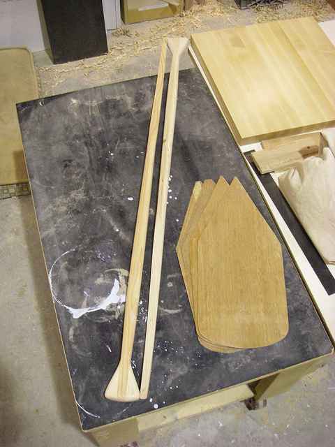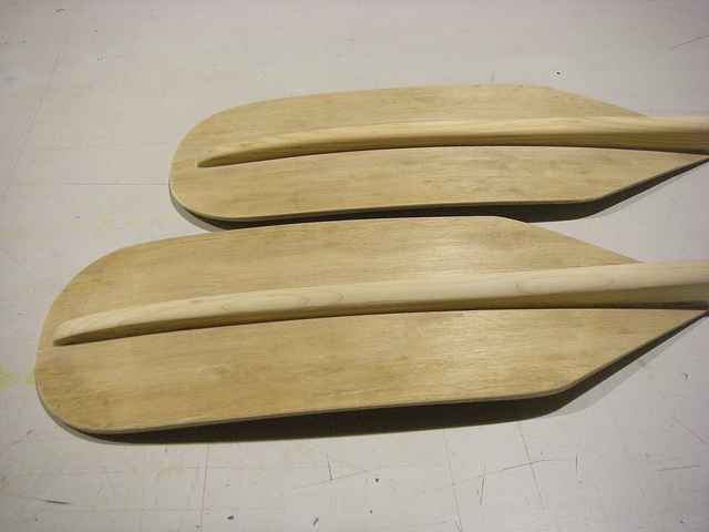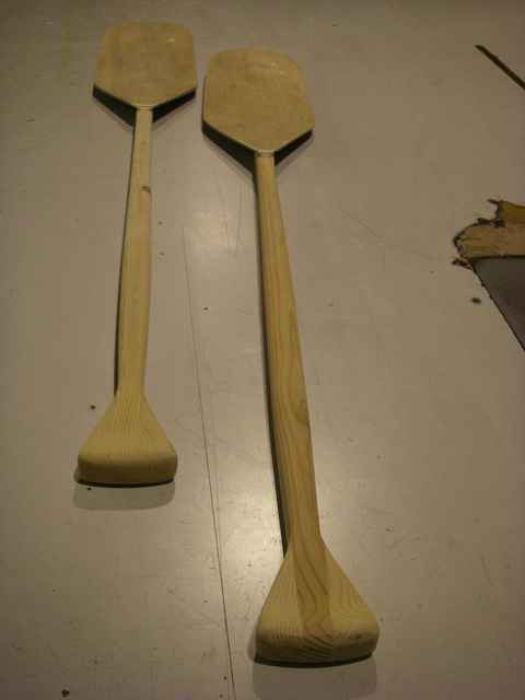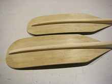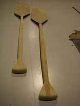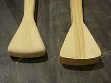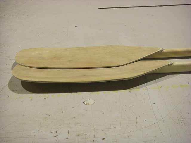 Finally complete - except for the varnish. Note that, in the end, I decided the blades as drawn were bigger than I wanted... so I have scaled them down a bit. Time will tell whether this was a good idea. But these two are not for active, primary, canoe paddling. They are for my personal use - as backup (when I don't want to use oars) auxiliary propulsion for two different sailing dinghys.