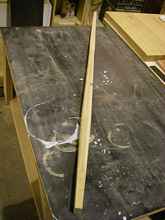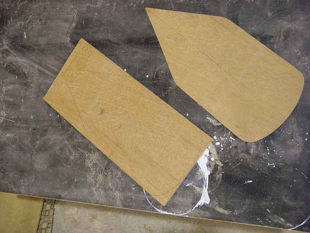Blades. One blank with layout lines, and one already cut to shape on bandsaw.