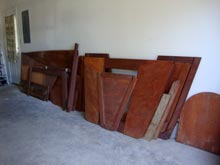 Back in March of 1979, I purchased plans for the wooden Dovekie from Mr. Phil Bolger and proceeded to fabricate the bulkheads, stem, transom and sides of the sailboat. That is as far as I progressed, as more important aspects of family and profession needed time and energy.
