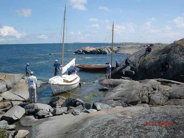 1530 and Raider is in the water tucked into the cattails of East Harbor in Dalsbruk for the night. She is rigged and ready to row or sail. Couple of beers and dinner and her crew is down for the count. One by one all boats arrive at the start point. Each has a story to tell.