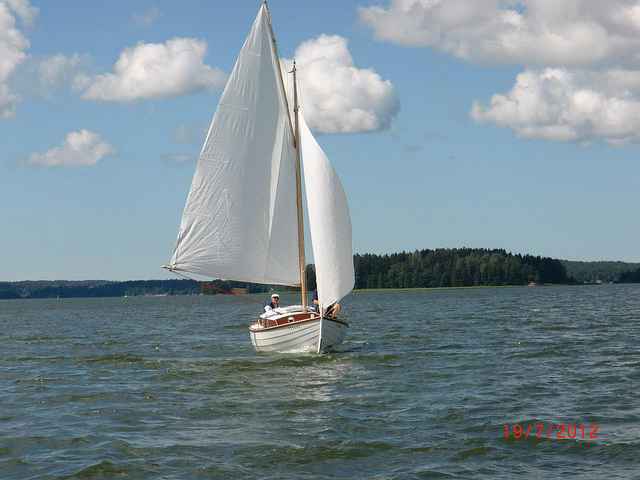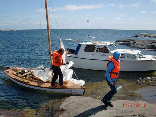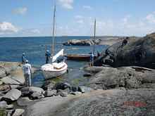 Seppo's two young friends, Ilkka and Heli, brought Seppo's 1939 O-Jolle (a wooden German design racing sloop, built for the 1940 Helsinki Olympics which did not occur) from central Finland to sail with us.